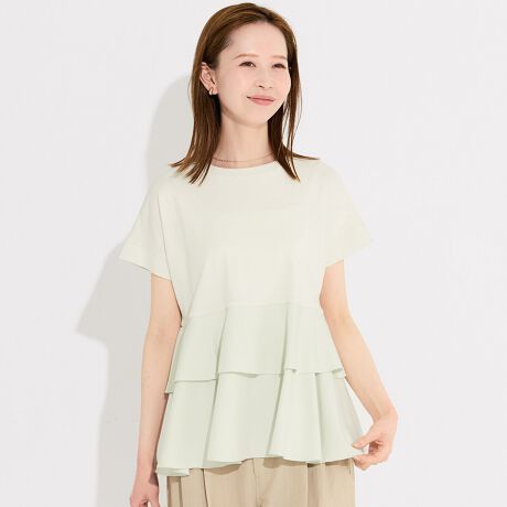 \新色登場/ 異素材切り替え2段フリルTシャツ 全4色