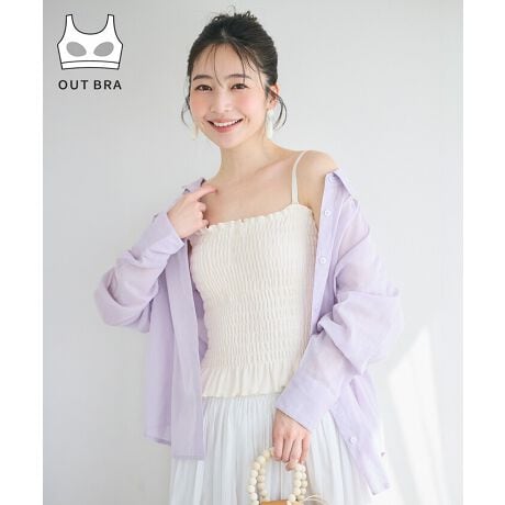 カップ付きのシャーリングキャミがおしゃれ見えする