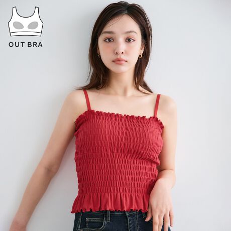 カップ付きのシャーリングキャミがおしゃれ見えする