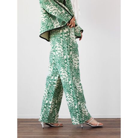 オリジナルのボタニカル柄を落とし込んだ、ジャガード生地のパンツ。