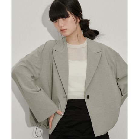 シャツのイージーさとジャケットの綺麗目な雰囲気を併せ持ったアイテム。ピークドラペルのきちんと感のあるデザインに、裾にドロスト仕様を採用し、カジュアル感をプラスしたイージーなシャケット。胸ポケットや太めの袖、後ろ身頃のふわっとしたフォルムもアクセント。サイドポケットも嬉しいポイント。