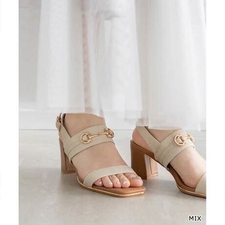 <24春夏新作>【22.5-25.5】ビットパーツチャンキーヒールサンダル