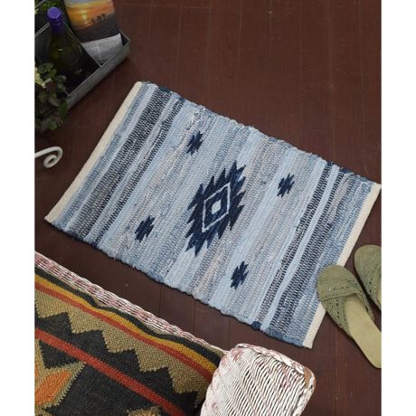 リサイクルデニムを使用したチンディ(裂き織り)のマット。