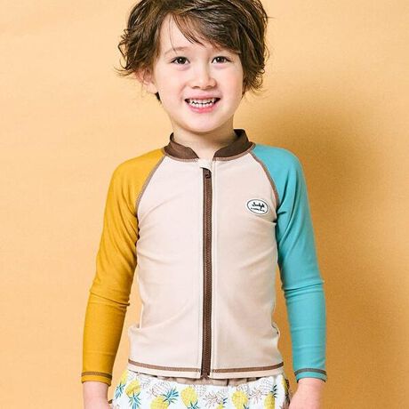 優しいくすみカラーのラッシュガード♪どんな水着とも合わせやすい無地デザインに、カラー切り替えで遊び心もプラス?前開きタイプのラッシュガードなので、サッと羽織っていただけてお着替えもラクチン◎夏レジャーのお供におすすめです!