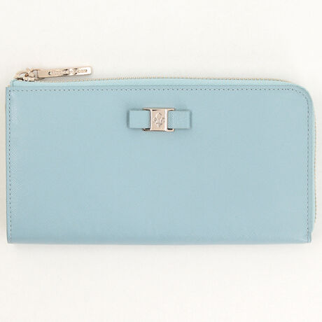 [型番:PXLWDAT2]クールなリボンとカラフルなカラーバリエーションが新鮮なお財布シリーズです。本体の型押し革は従来の物よりも柔らかく仕上げ、薄さにこだわりました。