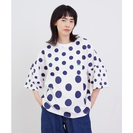 適度な厚みとキレイな表面感、肌触りの良い綿の天竺素材にオリジナルのドットプリントを3柄入れ込んだカットソー。