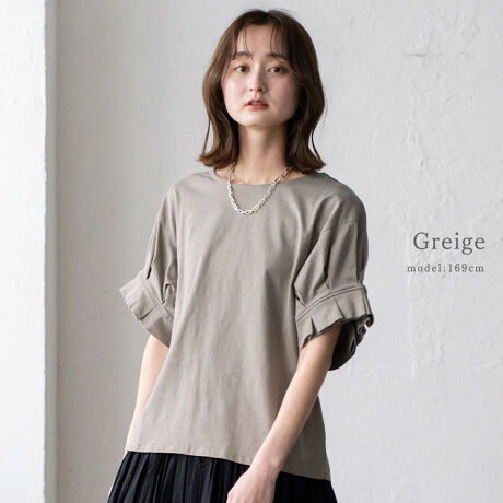 袖のフリルのようなタックデザインが、さりげなく二の腕をカバーしてくれます。