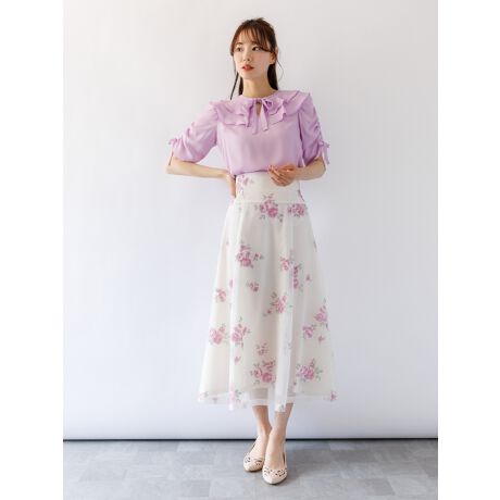 シアーな花柄で優雅なレディスタイルに!ふんわり揺れるリッチ感スカート