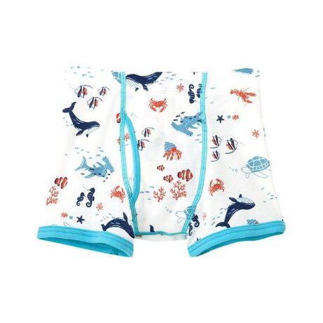 [型番:CPS525]【男児用ボクサー】はきこみ丈:ふかめ(深ばき)●身生地に、やわらかな綿を100%使用(40綿フライス素材) 伸びやかなフライス生地で、動きやすくしめつけ感の少ないはきごこちのよさ●BUカラー:スポーツの祭典をイメージした、ポップでキャッチーなスノボ恐竜プリントデザイン●TUカラー:くじらやクマノミなど海の生き物たちが楽しそうに暮らす楽園をイメージしたプリントデザイン