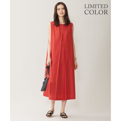 デイリーから華やかシーンまで活躍するノースリーブワンピース■デザイン素材の程よいハリ感を活かしたテントラインのノースリーブワンピースです。ノースリーブの幅を広めにしているので肩が見え過ぎず、ロング丈なので上品に大人っぽく着て頂けるデザインです。胸元にタックディテールを施すことで1枚でサマになるのはもちろん、上から羽織りを着た時にもお顔周りを華やかに見せてくれます。ジャケットを合わせて華やかなシーンや、カーディガンを合わせて普段のお出かけシーンにも着回しできるアイテムです。後ろのグログラン付きファスナーは、ファスナーの開閉がしやすく、デザインポイントにもなっています。鮮やかなディープオレンジ(020)はWEB限定カラーです。■素材タテ糸にポリエステル、ヨコ糸にポリエステルコットンを高密度に織り上げたタフタ素材です。ヴィンテージ加工でハリやコシを抑えて、ナチュラルな抜け感を出し、最後にカレンダー加工を施してツヤ感を出すことで上品で綺麗な表情に仕上げています。