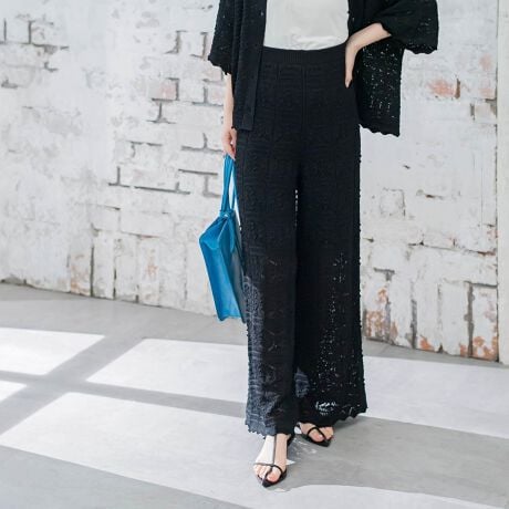 春夏のカジュアルリラックスに欠かせない、かぎ編みニットパンツが登場。