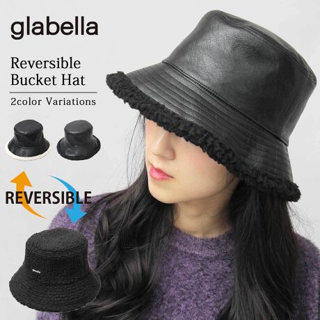 バケットハット 裏ボア フェイクレザー リバーシブル