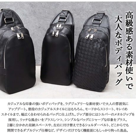 カジュアルな印象の強いボディバッグを、ラグジュアリーな素材使いで大人の雰囲気にアップデート。