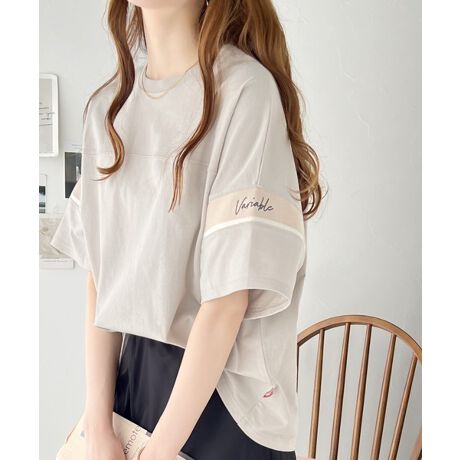 メンズライクなオーバーサイズで仕上げた配色リブライン刺繍ロゴフットボールTee。