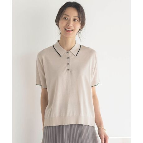 ゆるすぎないサイジングで、程良い抜け感のあるポロニット、襟と袖口の端に配色ラインを施して、アクセントにしています。襟付きのデザインのため、きちんとした印象でON/OFF幅広くお使いいただける1枚です。カラーは、落ち着いた印象のブラウン(#030)、明るく肌なじみの良いベージュ(#033)、オンオフ問わず活躍するネイビー(#075)の3色で展開します。