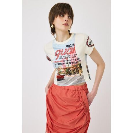 【REMAKE PRINT TINY TSJ】MOUSSYの今季のテーマでもある原点進化をもとに、2000年代当時、実際にMOUSSYで発売していた商品のグラフィックを用いたり、ここ最近で使用していたグラフィックを混ぜて、今っぽくリメイクしたかのようなTシャツに仕上げました。素材もツルッとしたものと綿素材の2種類の素材を使用。前後で見え方を変えており、1枚で決まる、インパクトのあるTシャツに仕上げているので、ボトムスはシンプルに仕上げるのも◎■透け感:なし■光沢感:なし■伸縮性:ややあり■裏地:なし