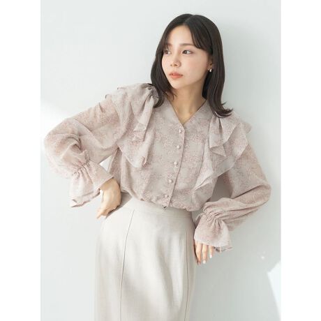 線画タッチの花柄デザインで、エレガントな雰囲気に仕上げたブラウス。