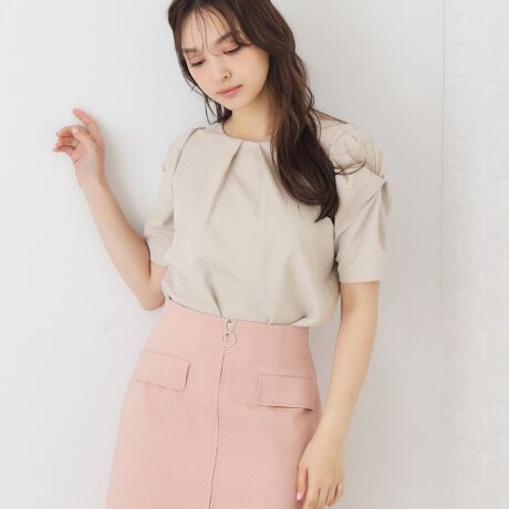 カットミラノのタックスリーブが華やかなデザイントップス