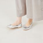 メタリック素材の程良い艶感が存在感を残しつつ、抜け感を出してくれる大人のバレエシューズ。