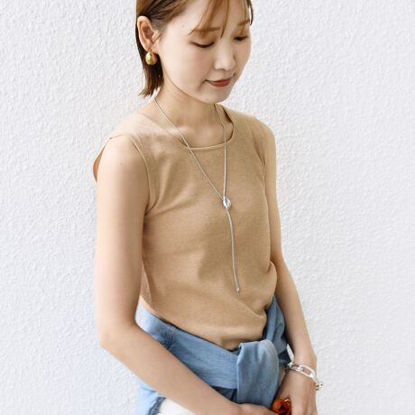 控え目なラメ感がデイリー使いに最適◎1枚でも着やすいサマーニット素材タンクトップ