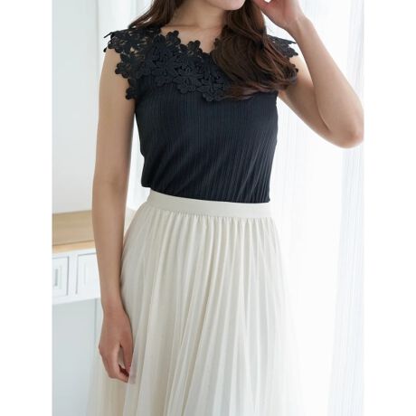 胸元のスカラップレースがフェミニンな風合いを演出するタンクトップ。