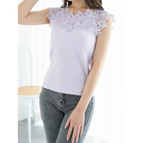 胸元のスカラップレースがフェミニンな風合いを演出するタンクトップ。