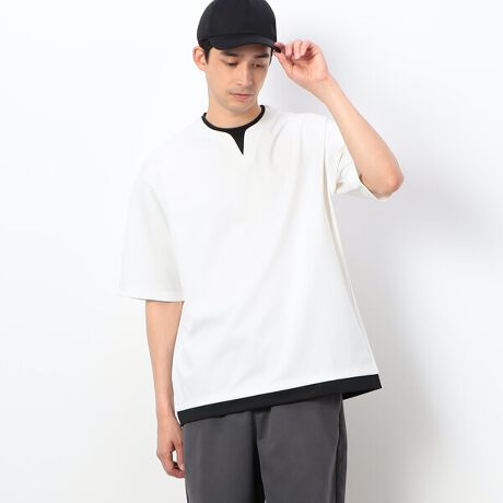 フェイクレイヤード キーネックTシャツ