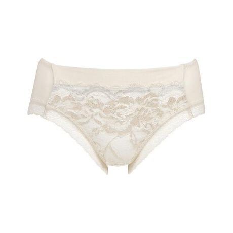 ●やさしい肌ざわり 本体は綿混素材を使用●ラクなはきごこち 前ウエストは折り返し始末でおなかにくいこみにくく、圧迫感を軽減※フロントには環境に配慮した再生糸混のレースを使用<LLサイズ>前ウエスト中側にストレッチテープを内蔵しウエストの安定感をプラス「小さく見せるブラ(BRB329)」とペアコーデが楽しめるショーツ。本体は綿混素材で、安心感のあるラクなはきごこちです。フロントのレースにほどこした、やわらかな光をイメージした箔プリントの上品なキラキラ感がポイント。※お洗濯は、必ず「取扱い表示」にしたがってください。