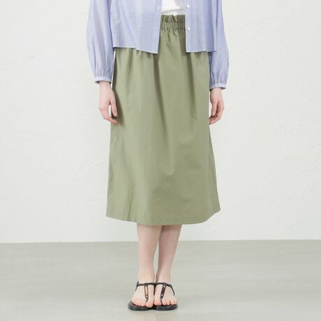 <ウエストのドローストリングディテールがポイントのミモレ丈スカート>