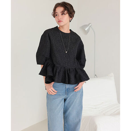 ・花柄のジャガード素材とペプラムデザインが大人可愛いブラウス。