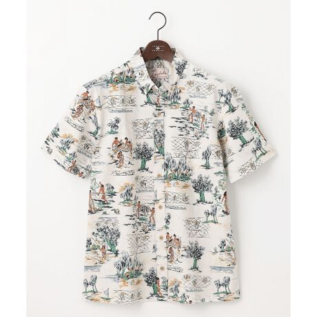 1930年代にハワイで設立された老舗アロハシャツブランド。メイドインハワイの本格派ともいえる、コットン100%ブロードクロスは夏に着心地の良いサラリとした肌触りです。伝統的なコットンブロードクロスにプリントされたアートワークはビーチのみならず休日家中でのリラックスシーンにもマッチします。天然木製釦を使用。その為、つけ置き洗いは避け、洗濯後は脱水してすぐに干して下さい。濡れたまま放置あるいは重ねておきますと、釦から色落ちし身生地に色移りする恐れがあります。コラボレーションネーム付き。