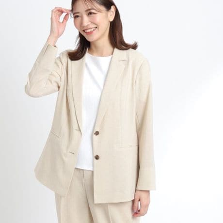軽やかに単品で気楽に着ていただけるジャケット未満、カーディガン以上の便利な羽織りジャケット。