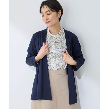 [型番:491073]軽やかで柔らかなフライス素材を用いたカーディガン。 留め具のないデザインで、エレガントな着こなしを後押しします。 スタイルがすっきりとして見える8分袖を採用。 羽織るだけでバランスの取れたコーディネートが完成します。モデル身長:165cm Mサイズ着用