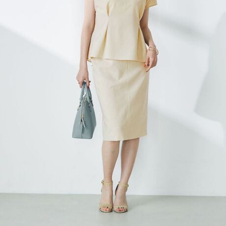・ドライタッチのトロ風素材を使用したシリーズのタイトスカート