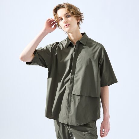 前身頃にフラシデザインを施し、比翼仕立てにしたAH ABAHOUSEならではのモード感溢れるデザイン。オーバーシルエットと相性が良い、落ち感がきれいな生地を使用しています。