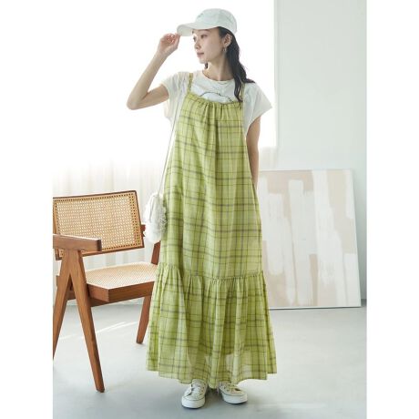 マドラスチェックで大人可愛いデザインに仕上げたキャミワンピース。