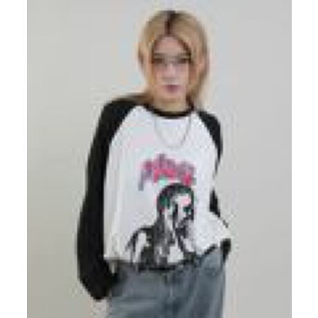 ヴィンテージ感溢れるプリントが今っぽいラグランカットソー。