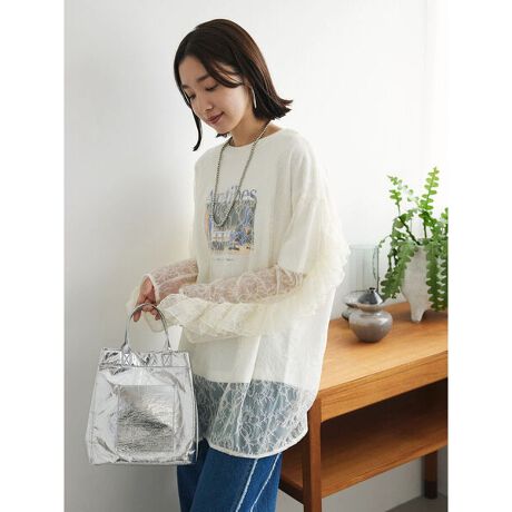 ・AND SEARCH レーシーラッフルスリーブチュニック