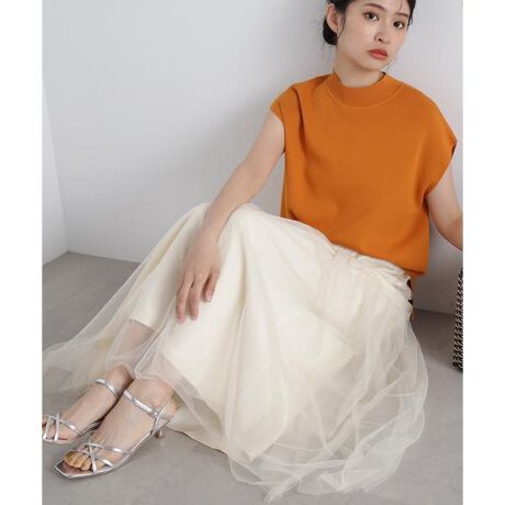 [型番:1664120501]お腹まわりをシンプルにまとめ、チュールを切り替えたドラマチックなスカートです。ふんわりとしたチュールでも、甘くなり過ぎないカラーで仕上げているので、デイリーに取り入れやすい一枚。ウエスト脇から後ろはゴム仕様なのでトップスインの収まりが良いです。夏はTシャツ合わせでカジュアルダウンした着こなしがお勧めです。