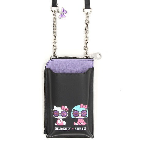 ハローキティとアナ スイが一緒に座っているアート。ハローキティが普段付けているリボンと、アナ スイらしいメガネをそれぞれおそろいで付けていてとってもキュート。背面にはカードポケット付き。