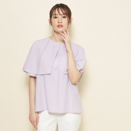 【洗えるきれいめ】ケープ風デザインブラウス
