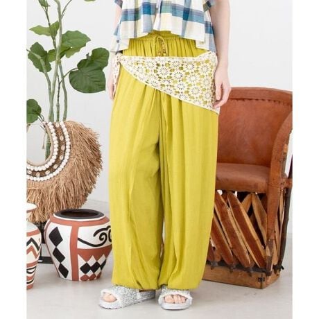 [型番:IDS-2225-2024]きれいなシルエットが魅力のパンツ。ベリーダンスをイメージしたデザイン。ゆったりシルエットとさらりとした肌触り。裾スリットと裏地付き。