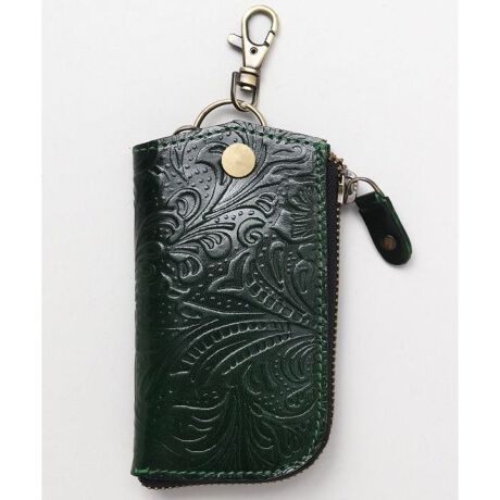 カーヴィングのような型押しのゴートレザーのシリーズ。シックな色味が男女問わず身に着けられる。他の形とセットで持ちたくなるようなサイズ展開。リングとロブスターフックがついて、便利なキーケース。使うたびに革が育っていくのを楽しめるインドのリアルゴートレザーをお楽しみください。