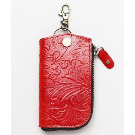 カーヴィングのような型押しのゴートレザーのシリーズ。シックな色味が男女問わず身に着けられる。他の形とセットで持ちたくなるようなサイズ展開。リングとロブスターフックがついて、便利なキーケース。使うたびに革が育っていくのを楽しめるインドのリアルゴートレザーをお楽しみください。