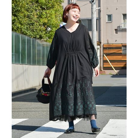 シンプルな繊細な花柄のシフリ刺繍がタップリ入ったワンピース◎