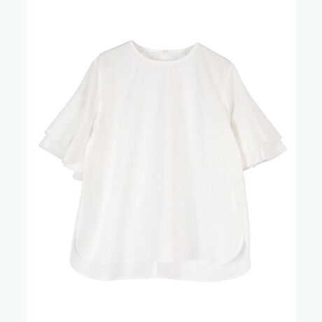 ・袖のランダムフリルが可愛い。・二の腕カバーができる袖丈。・着映えする1枚。・差し色はストライプで甘すぎない。[型番:ADXN1877]