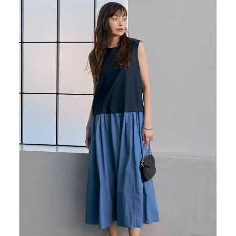 異素材コンビで一枚でサマ見え、仕事にも旅行にも便利なコンビドレス