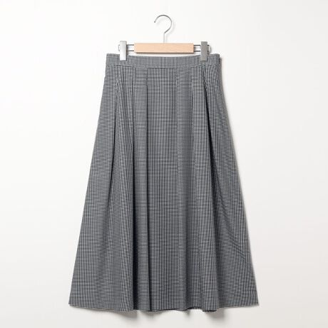 着こなしのアクセントになる細かなギンガムチェック柄がさわやかなムードのスカート。腰回りにボックスプリーツ加工をほどこし、フレアに広がるシルエットがフェミニンなムードを演出。軽やかかつエレガントに決まるひざ下ミモレ丈で、スタイリッシュなおでかけコーディネートにぴったりなアイテムです。