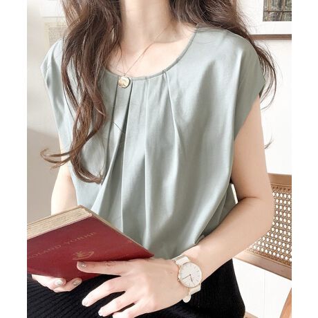 シンプルなボトムスと合わせてもタックプリーツが着映えするトップスです。