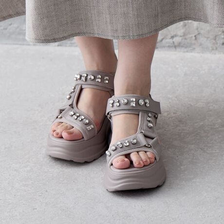 スポーティーでありながら、きれいめな着こなしにも合わせやすいビジュー付きのサンダル。